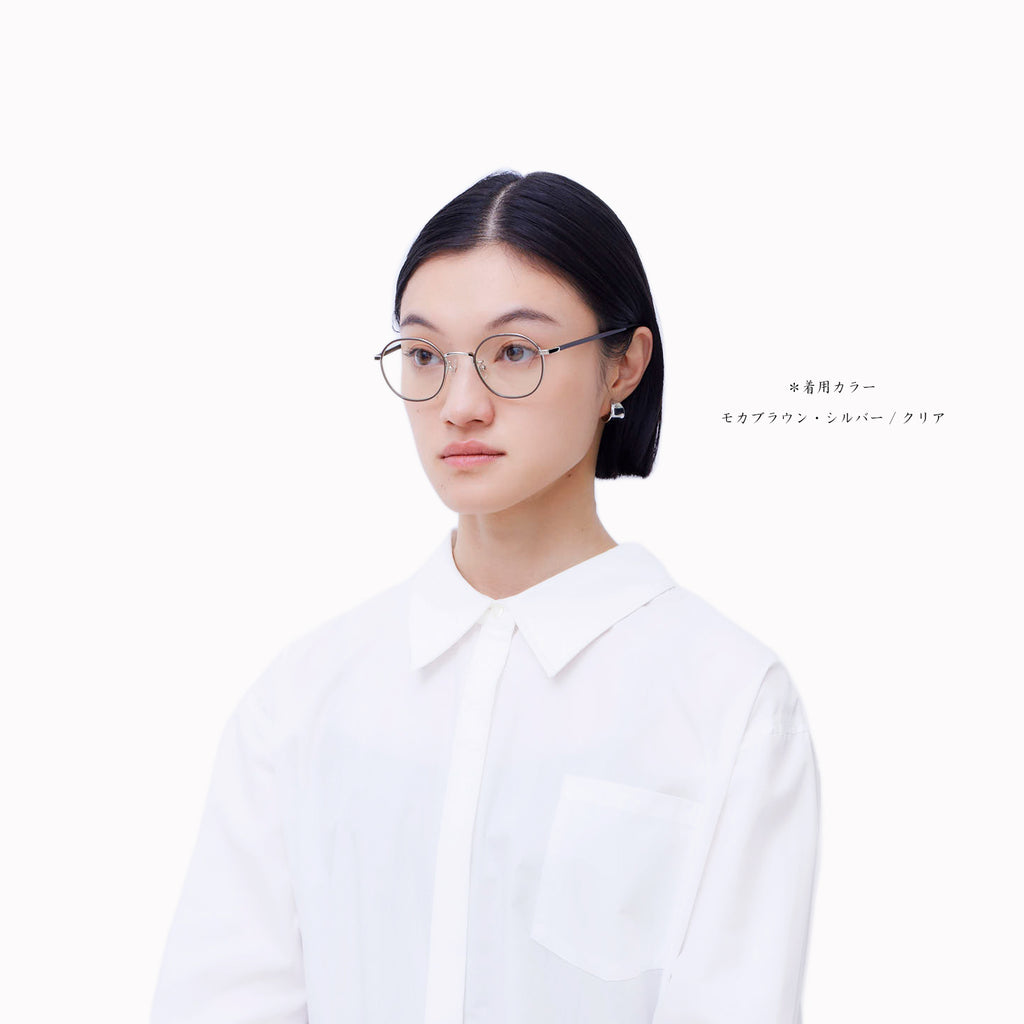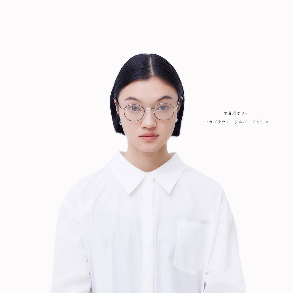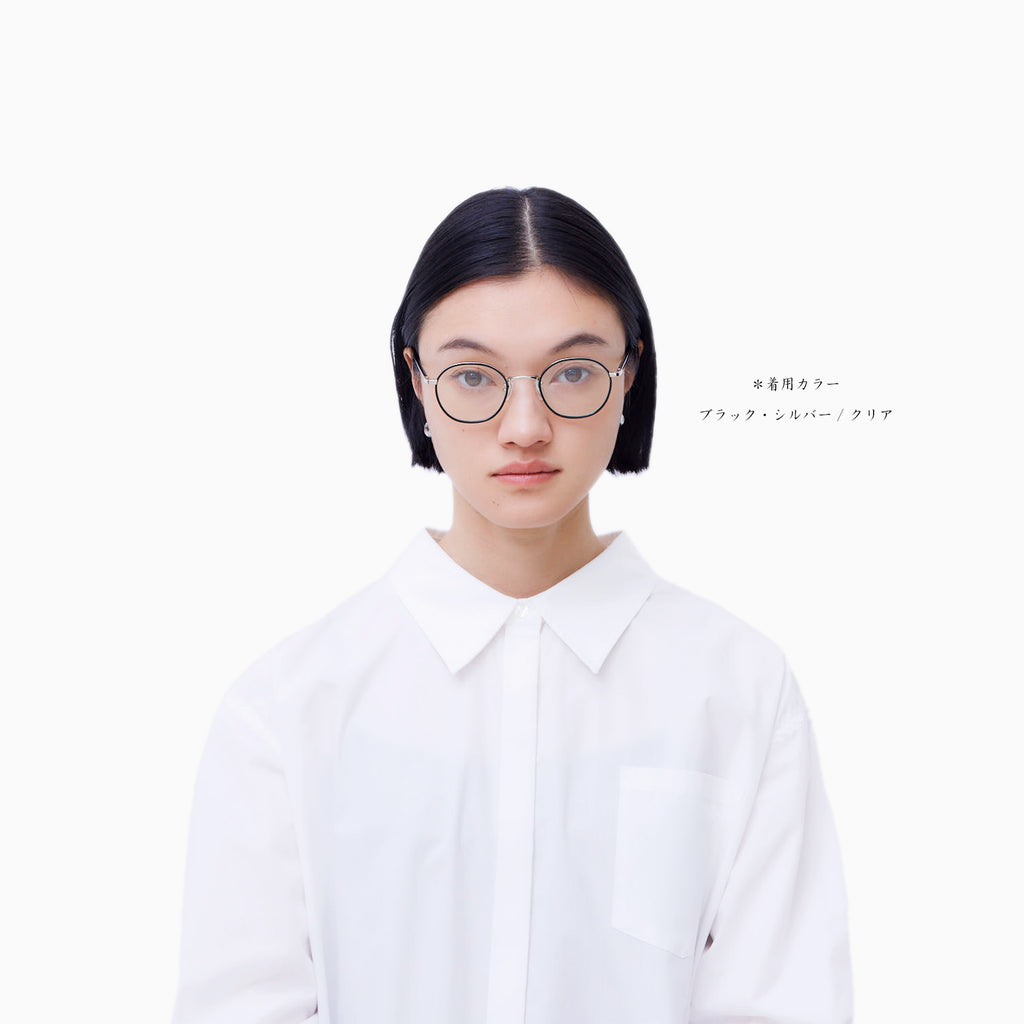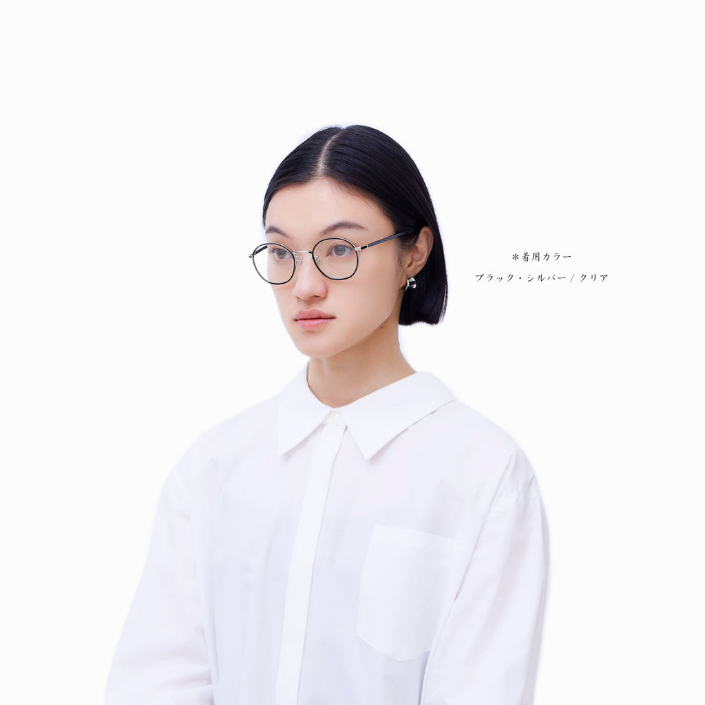 インナーセルと呼ばれるプラスチックをメタルで挟み込んだディテールのラウンドシェイプモデル。シンプルかつミニマムにデザインしている為、少し物足りないデザインかもしれないですが、丸く縦浅のシェイプが馴染みやすく、とてもシックなスタイルに。