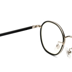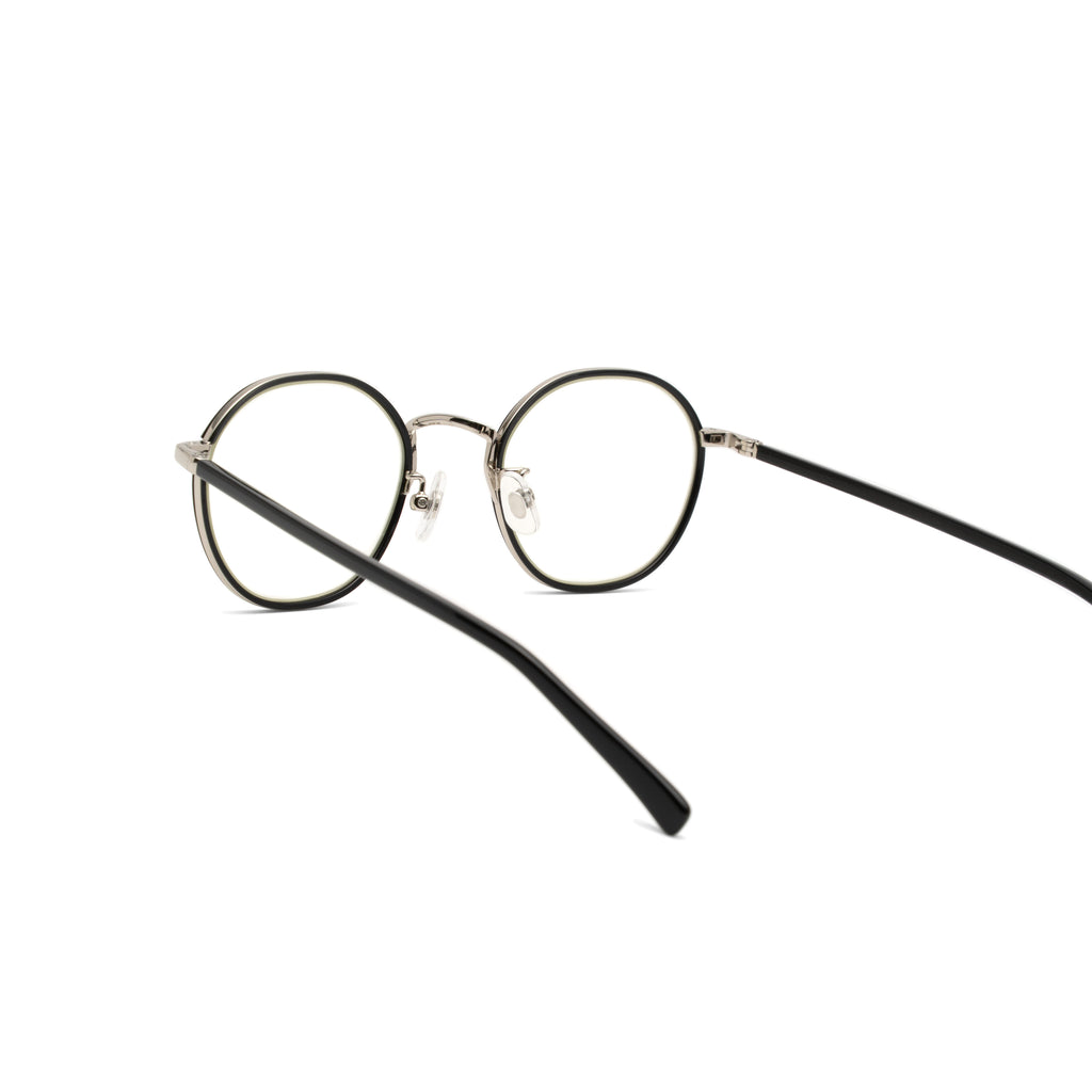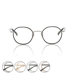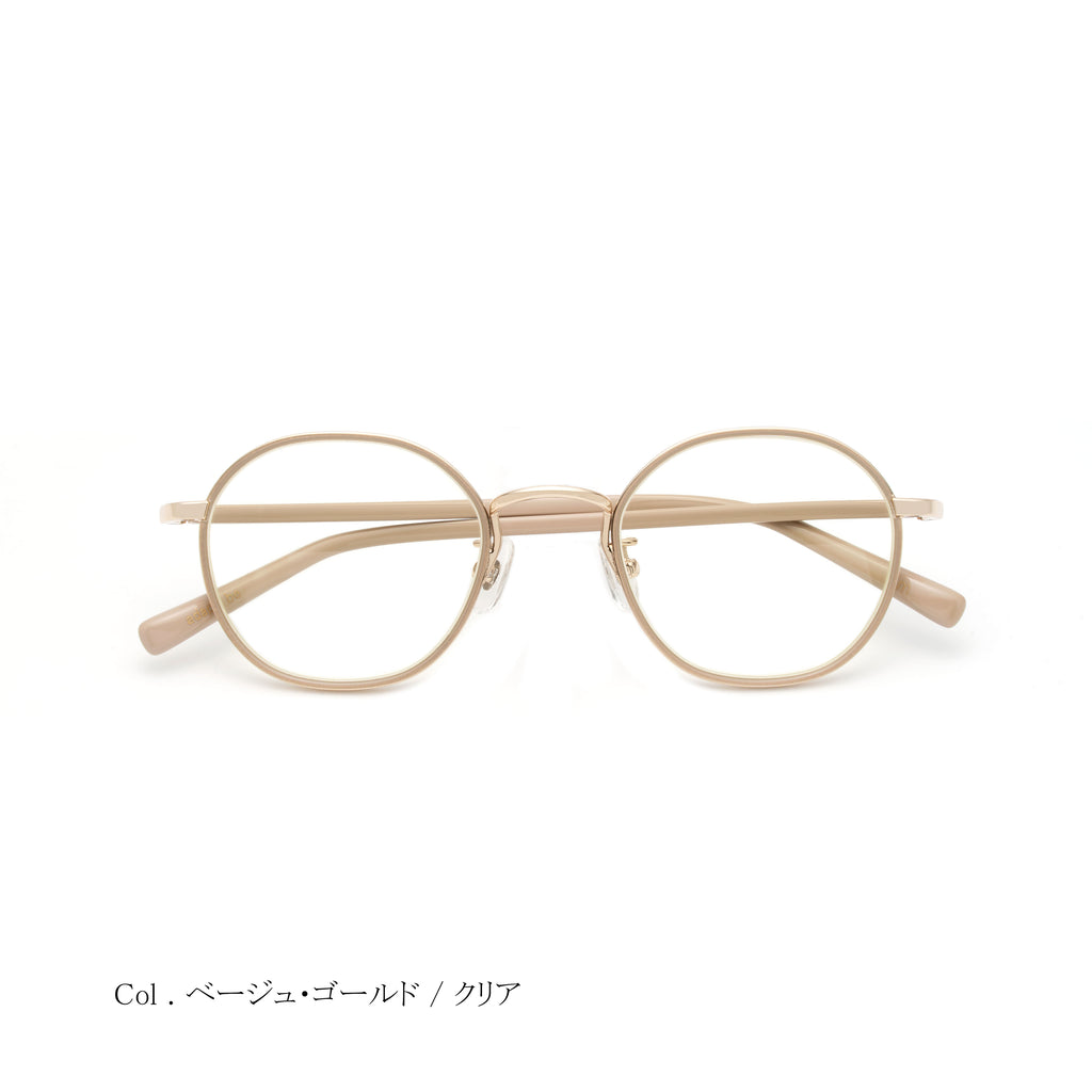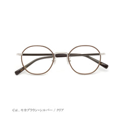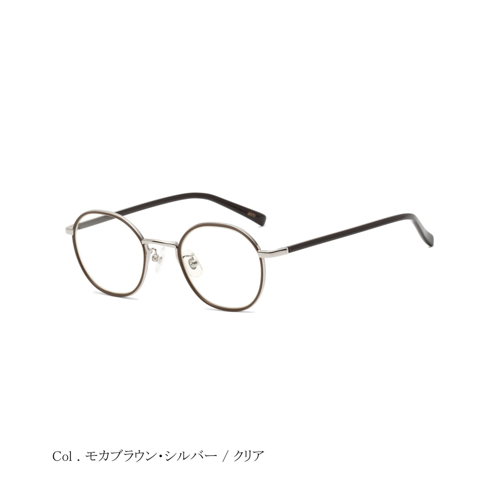 インナーセルと呼ばれるプラスチックをメタルで挟み込んだディテールのラウンドシェイプモデル。シンプルかつミニマムにデザインしている為、少し物足りないデザインかもしれないですが、丸く縦浅のシェイプが馴染みやすく、とてもシックなスタイルに。
