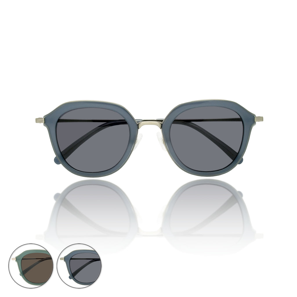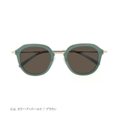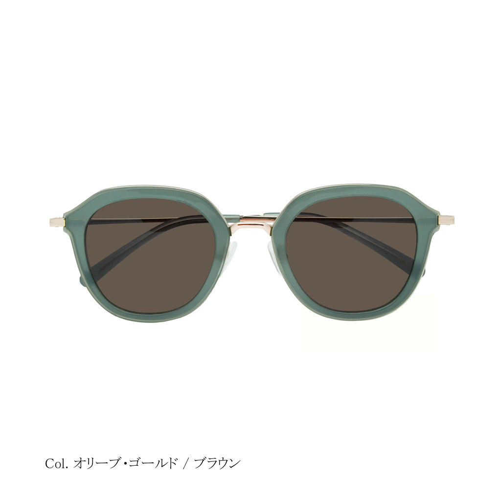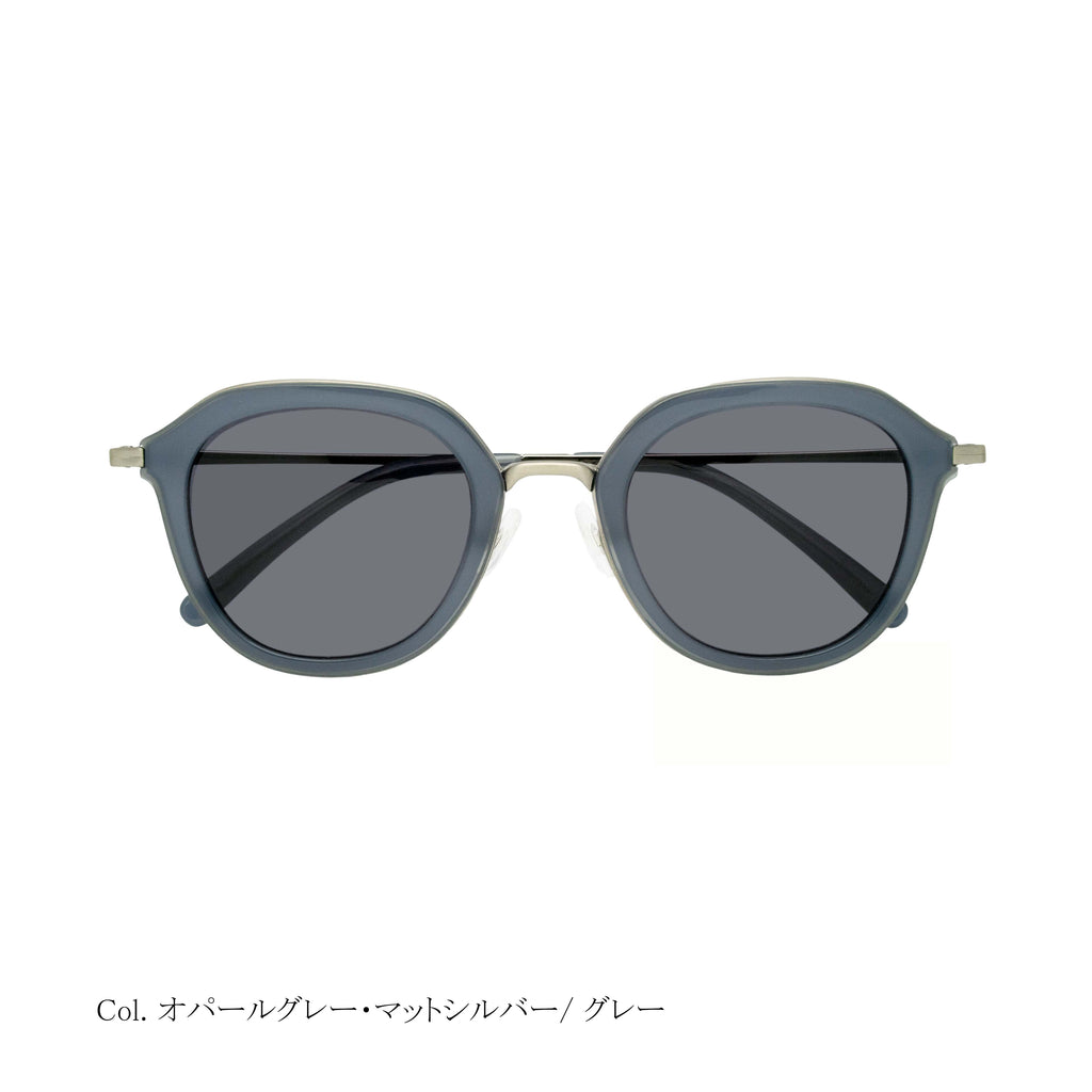 フロントはアセテート素材のスクエアの玉型をメタルが囲み、同色のメタルテンプル、モダンはアセテート素材のコンビネーションモデル。