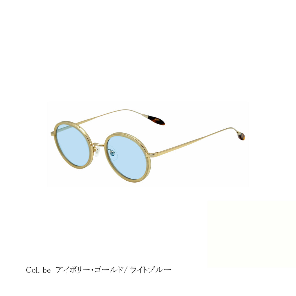野暮ったさが出てしまう小振りなオーバルシェイプの丸みをやや強くし、また天地(フレーム縦幅)を浅くすることにより、こなれたさりげない印象にしたモデルです。