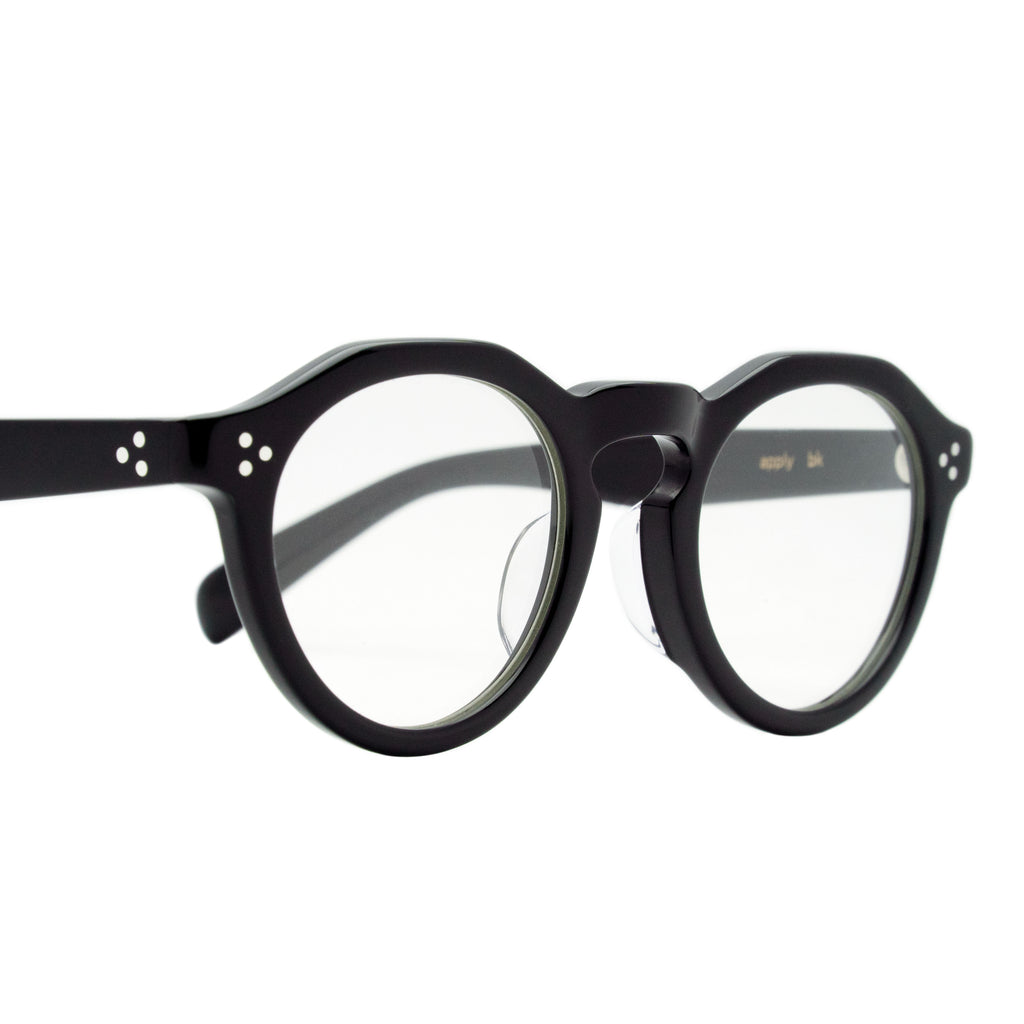 定番になりつつあるクラウンパントシェイプとラウンドシェイプを掛けわせたaimオリジナルのシェイプです。別モデルのクラウンパントシェイプ「chronostasis」が柔としたら、こちらのモデルは剛といったクラシカルな雰囲気を前面に打ち出したモデルとなっています。ノーズ部分はキーホルノーズを使用している為、試着した際に鼻立ちがすっきり見え、癖がありそうなフロントシェイプに自然と調和するデザインとなっています。
