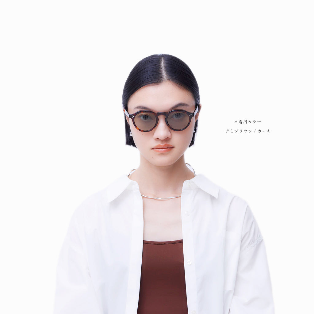 定番になりつつあるクラウンパントシェイプとラウンドシェイプを掛けわせたaimオリジナルのシェイプです。別モデルのクラウンパントシェイプ「chronostasis」が柔としたら、こちらのモデルは剛といったクラシカルな雰囲気を前面に打ち出したモデルとなっています。ノーズ部分はキーホルノーズを使用している為、試着した際に鼻立ちがすっきり見え、癖がありそうなフロントシェイプに自然と調和するデザインとなっています。