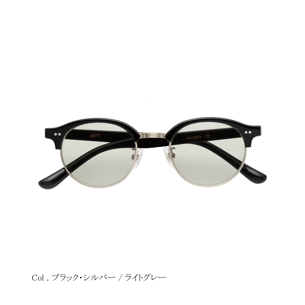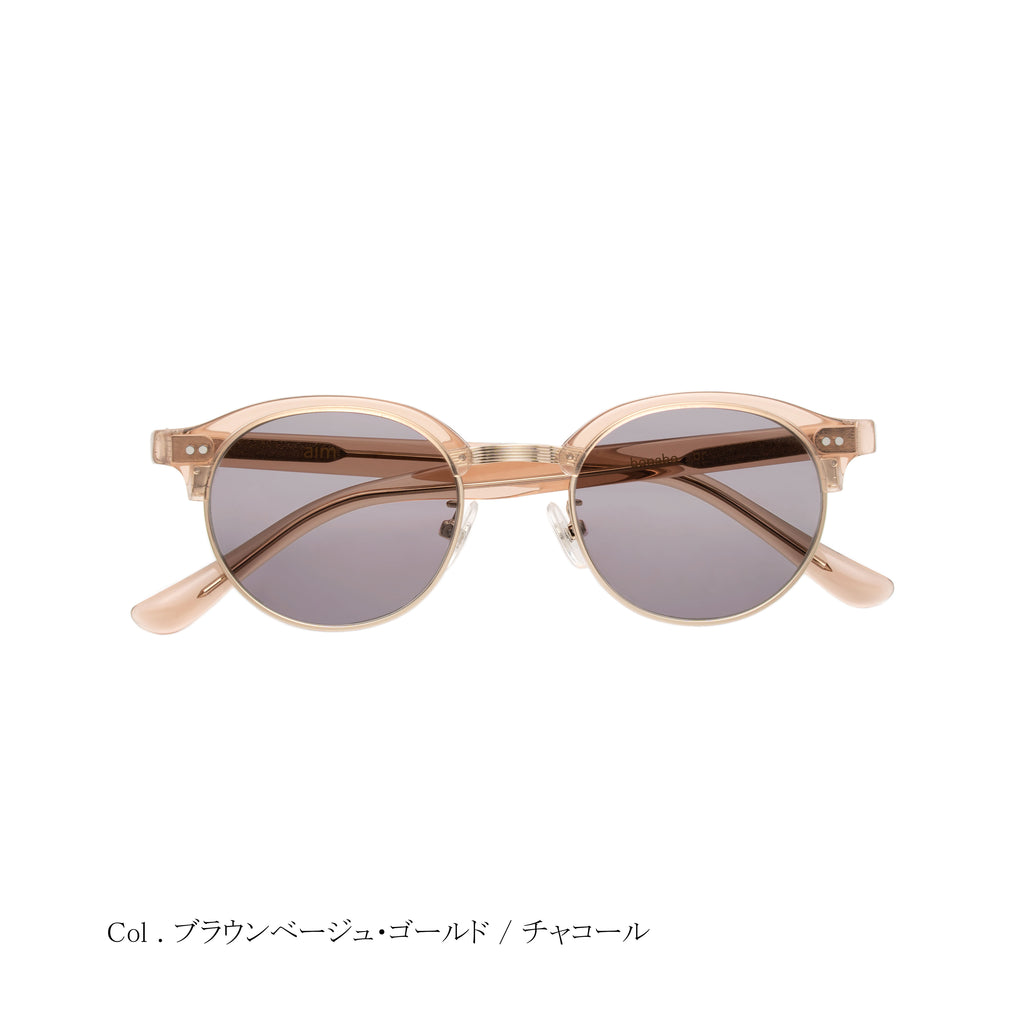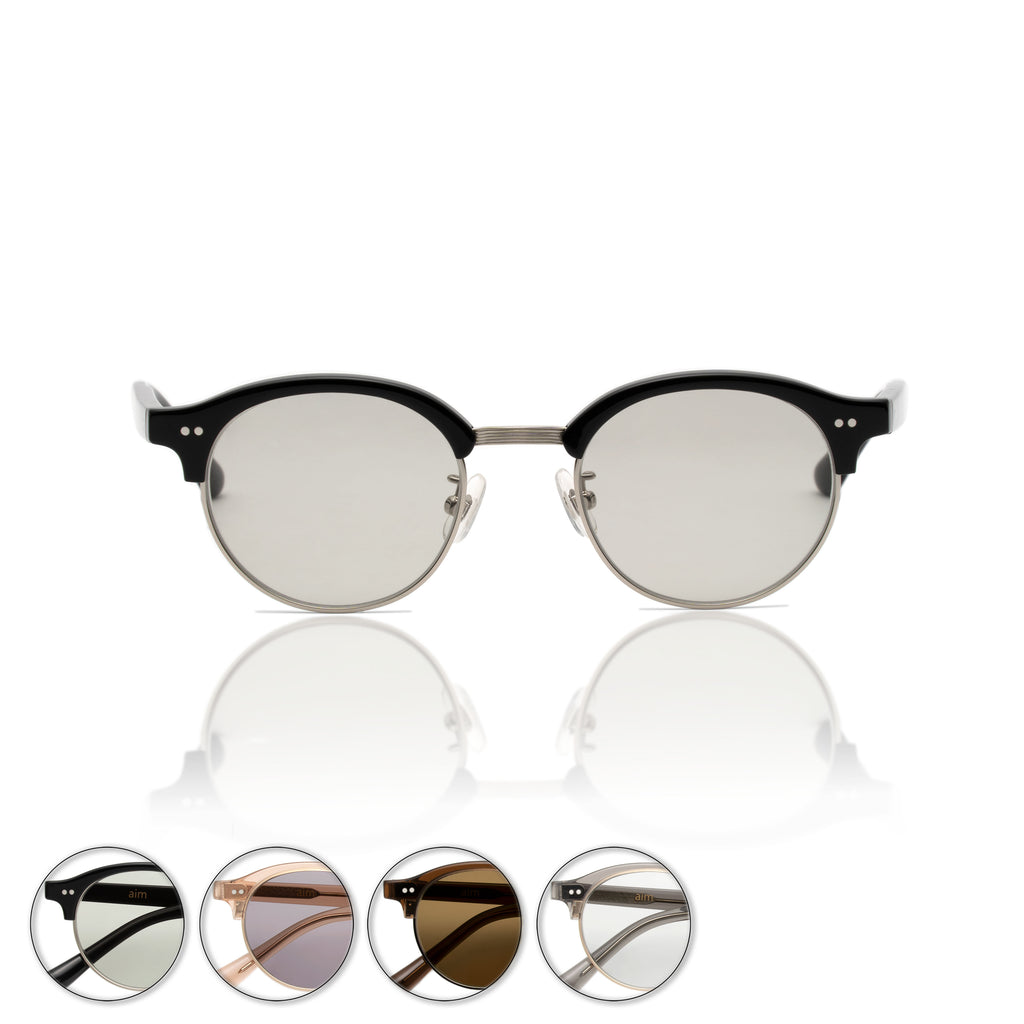 aimのコレクションとして初めとなるサーモントシェイプは、ラウンドサーモントをチョイス。レーザーで装飾したブリッジは、スタイリッシュでエレガントな印象を与えてくれます。サーモントは顔馴染みが良いので、シーンを選ばず、またサングラスタイプとしてもご使用いただける万能的なモデルです。
