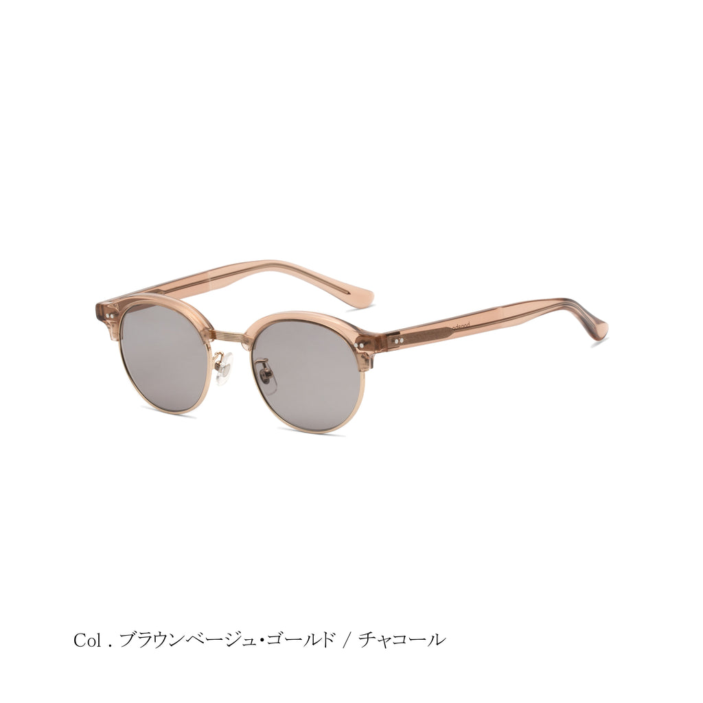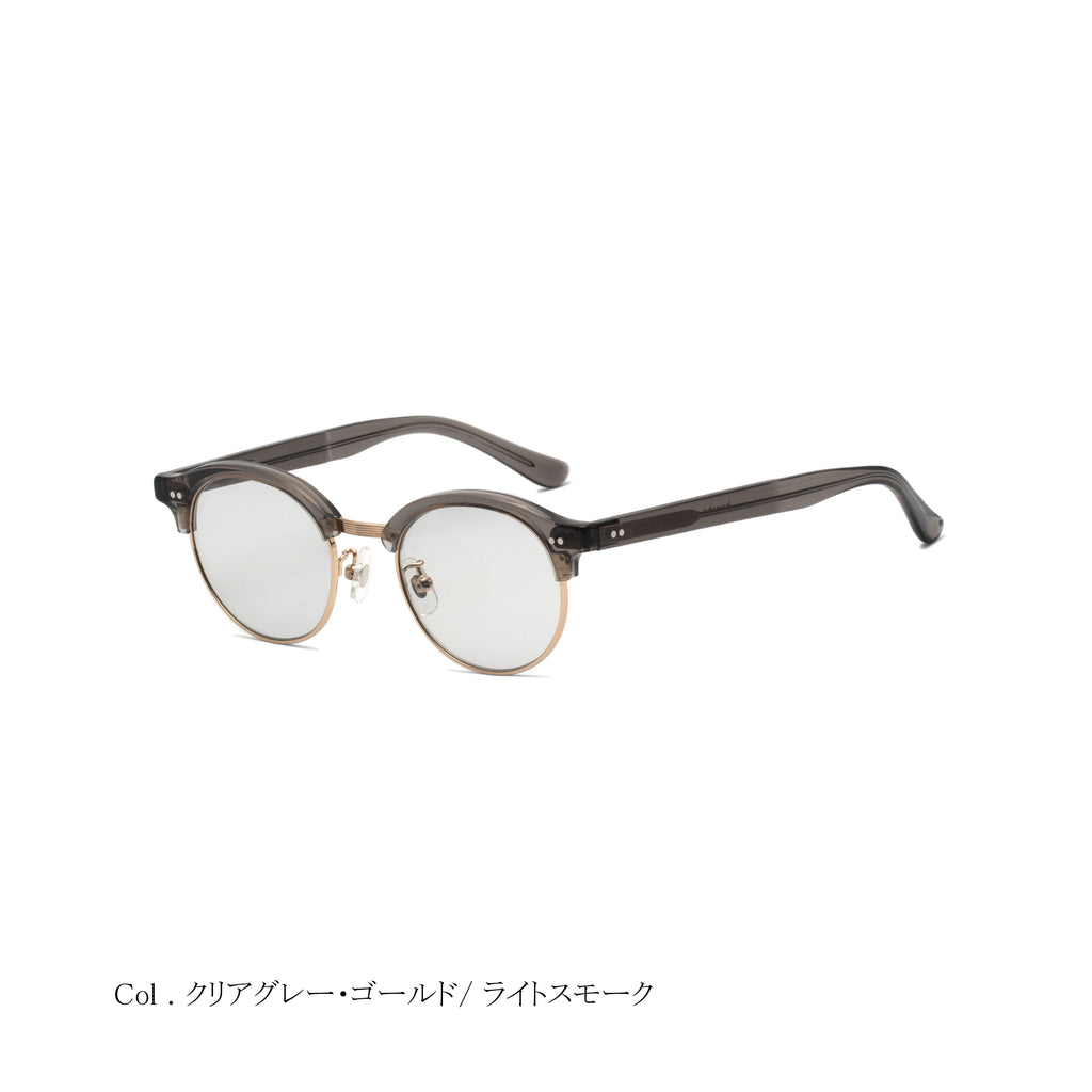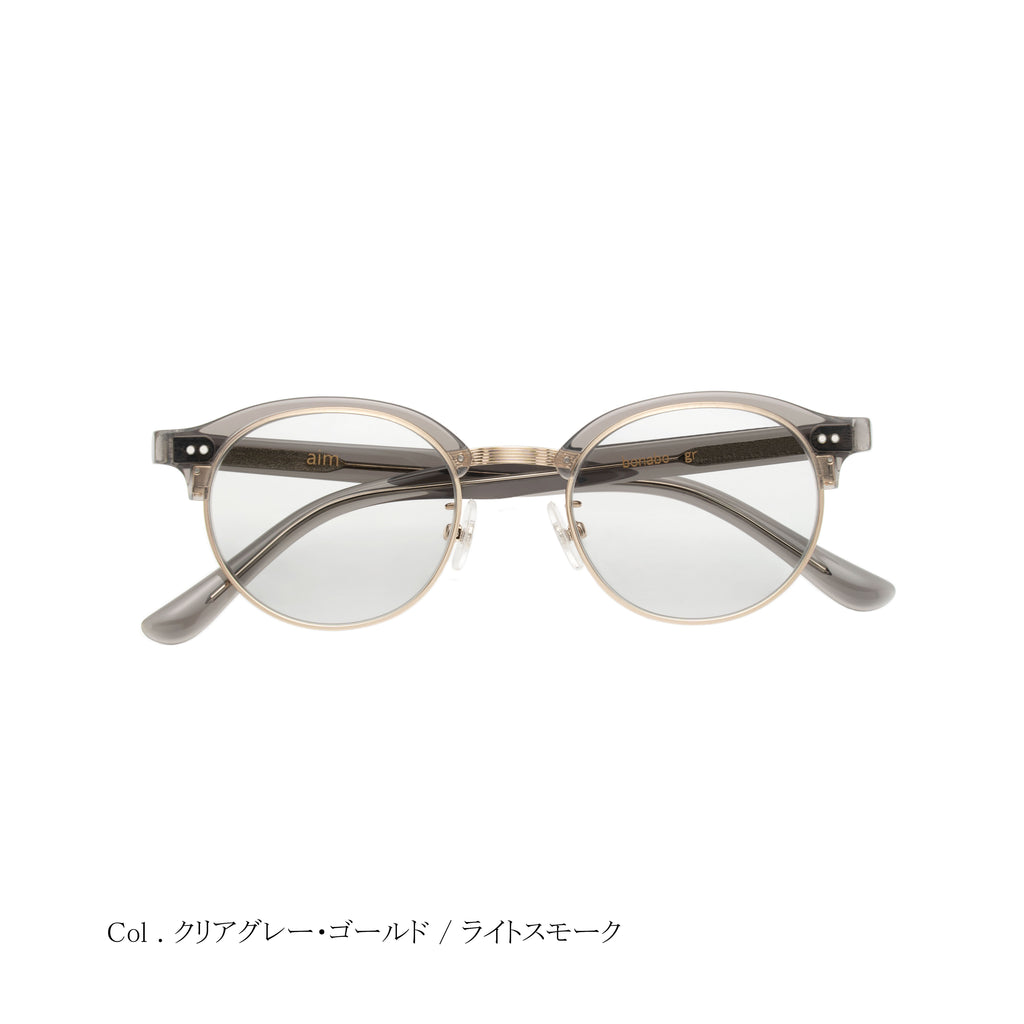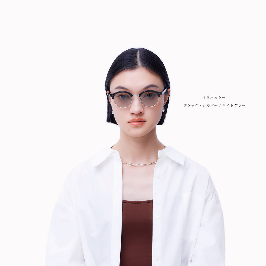 aimのコレクションとして初めとなるサーモントシェイプは、ラウンドサーモントをチョイス。レーザーで装飾したブリッジは、スタイリッシュでエレガントな印象を与えてくれます。サーモントは顔馴染みが良いので、シーンを選ばず、またサングラスタイプとしてもご使用いただける万能的なモデルです。