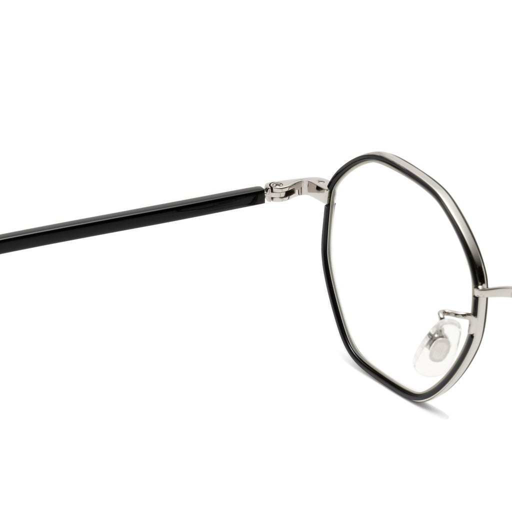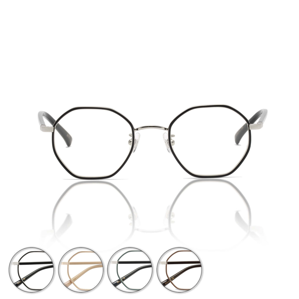インナーセルと呼ばれるプラスチックをメタルで挟み込んだディテールのオクタゴンシェイプモデル。(八角形シェイプ)「adapt」と比べ、フロントシェイプがオクタゴンの為、よりシャープでコンパクトなスタイルに。こちらのモデルもメタルパーツが醸し出す高級感質と、プラスチックの持つ柔らかさの融合をお楽しみください。