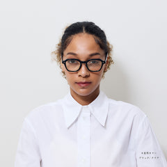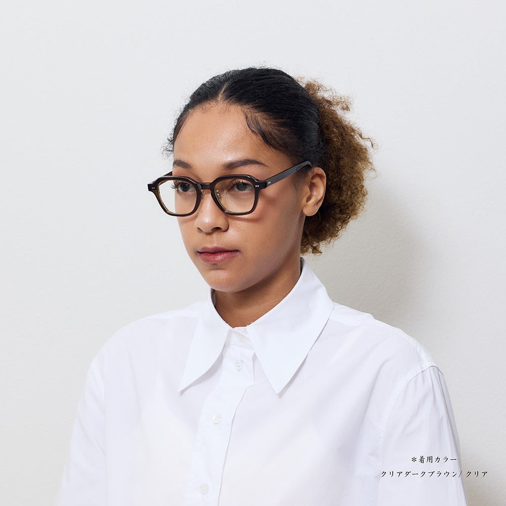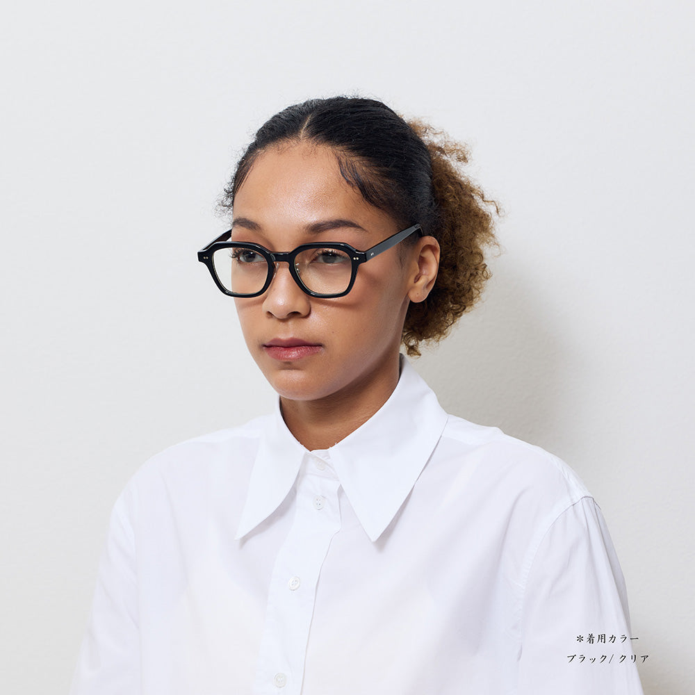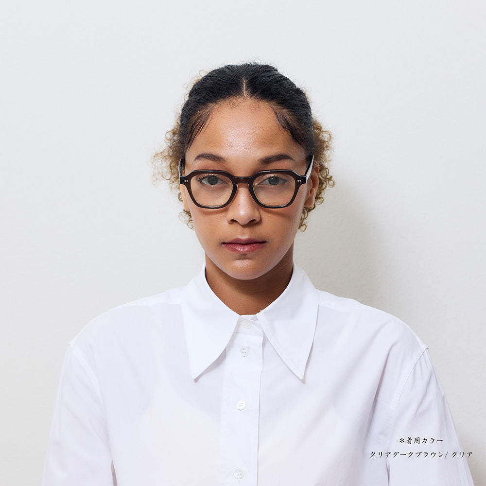 フレンチヴィンテージに見られるバタフライシェイプをブランドなりの解釈で落とし込んだモデル。リム上部からブリッジに掛けては、まるで蝶のような曲線のしなやかさな印象ですが、リム下部にかけてはスクエアで建築物のような無機質さを表現したバラフライスクエアシェイプにアップデート。