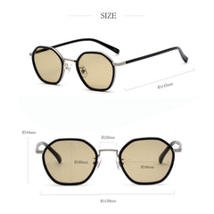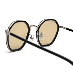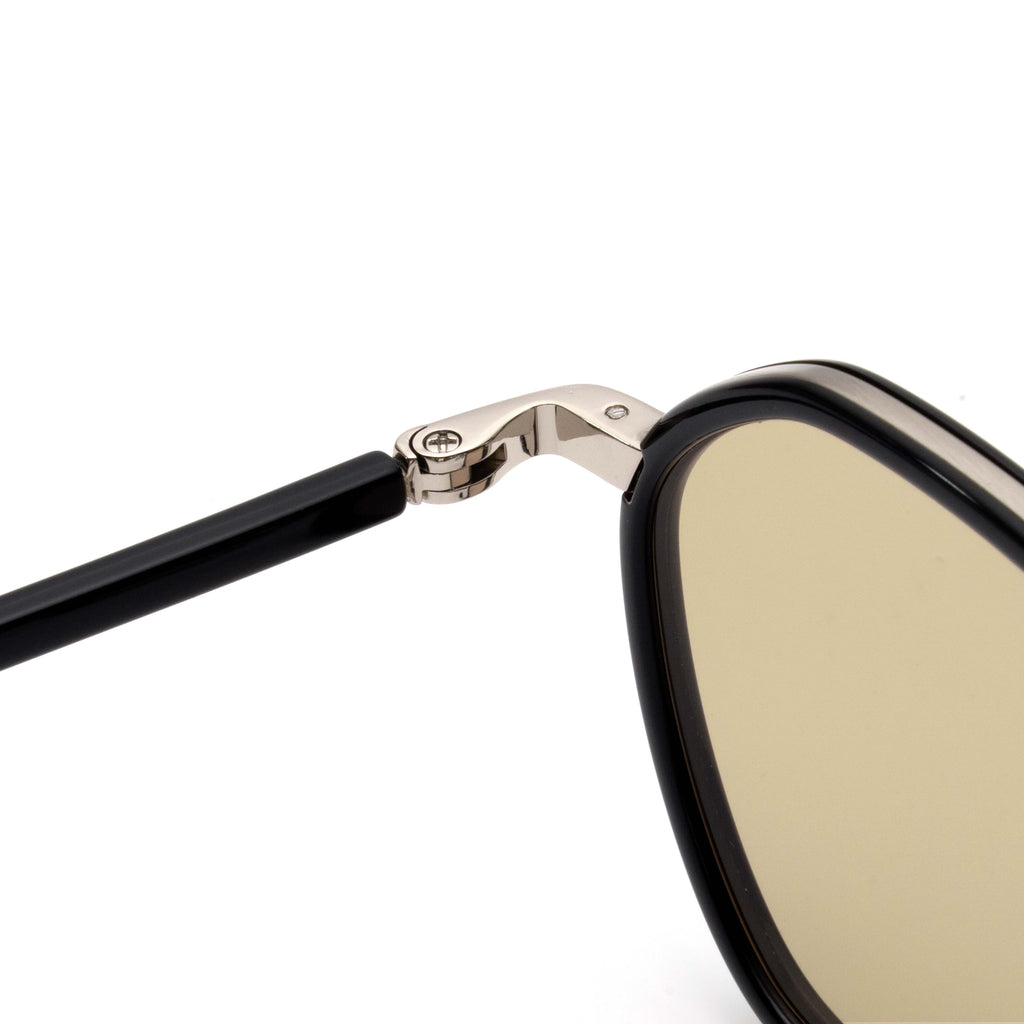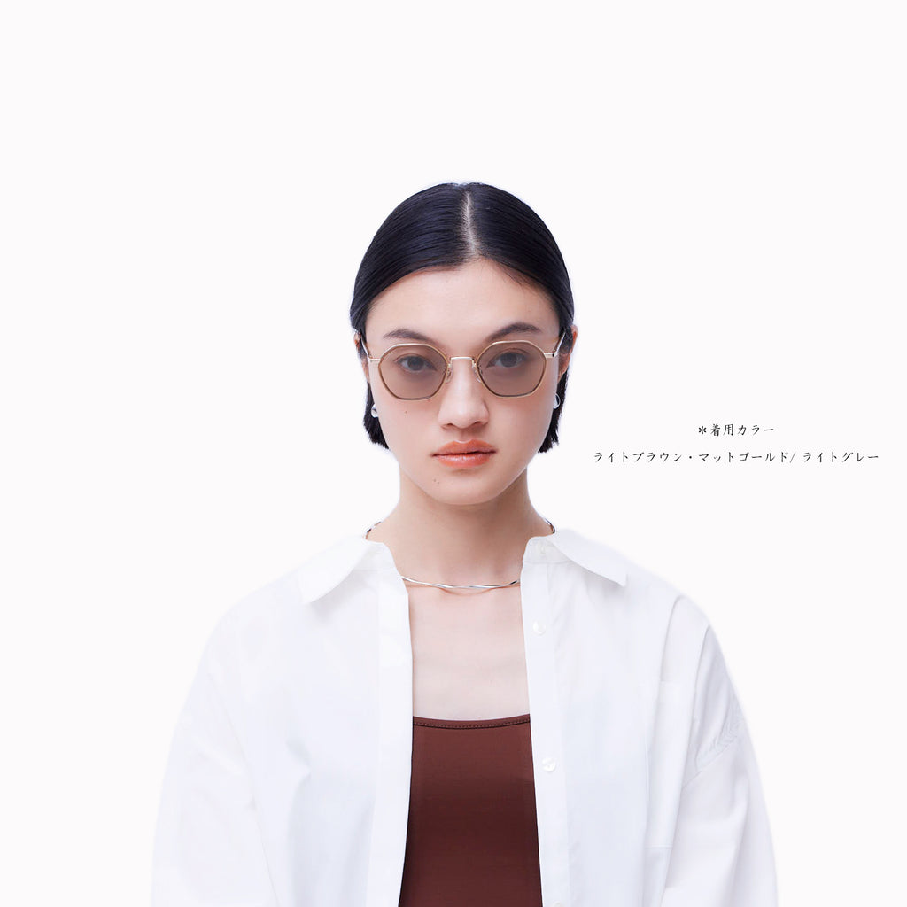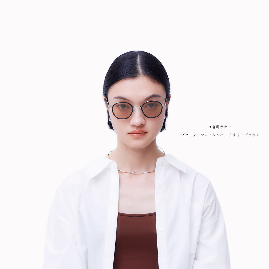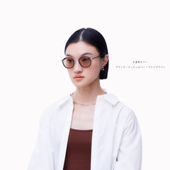 ラウンドシェイプに比べ、顔立ちが引き締まりスタイリッシュな印象を与えてくれます。また、フレームの内側にメタルを巻き込むことで、フレームの表情にさりげなく高級感を演出しています。