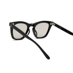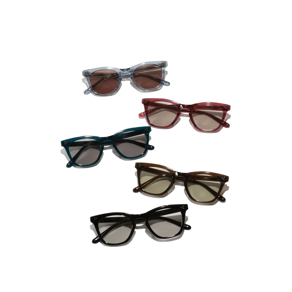 抑揚を持たせたブローラインは、柔らかい印象にする為、滑らかに。その反面、アンダーリムはカッティングを重視して少しカドを持たせています。ややエレガントなで力強い雰囲気のフォックスシェイプをお楽しみください。