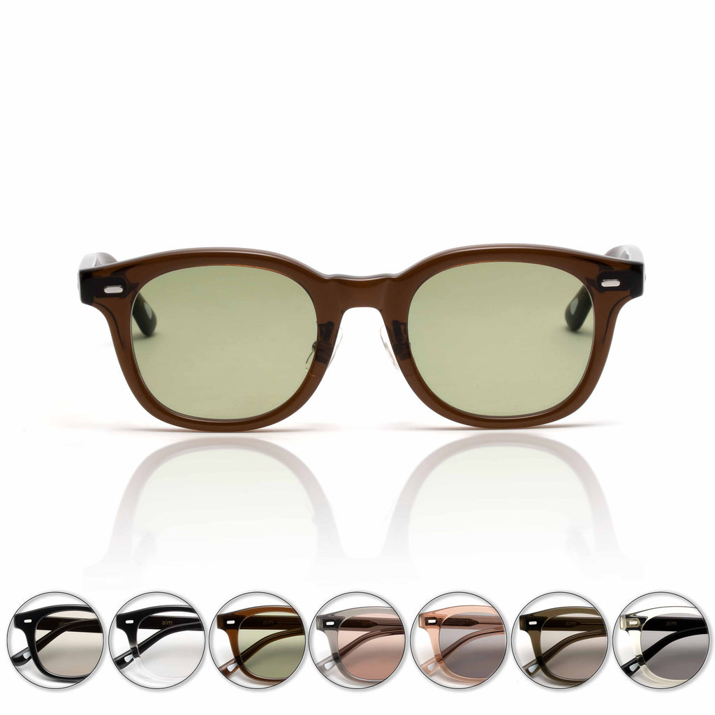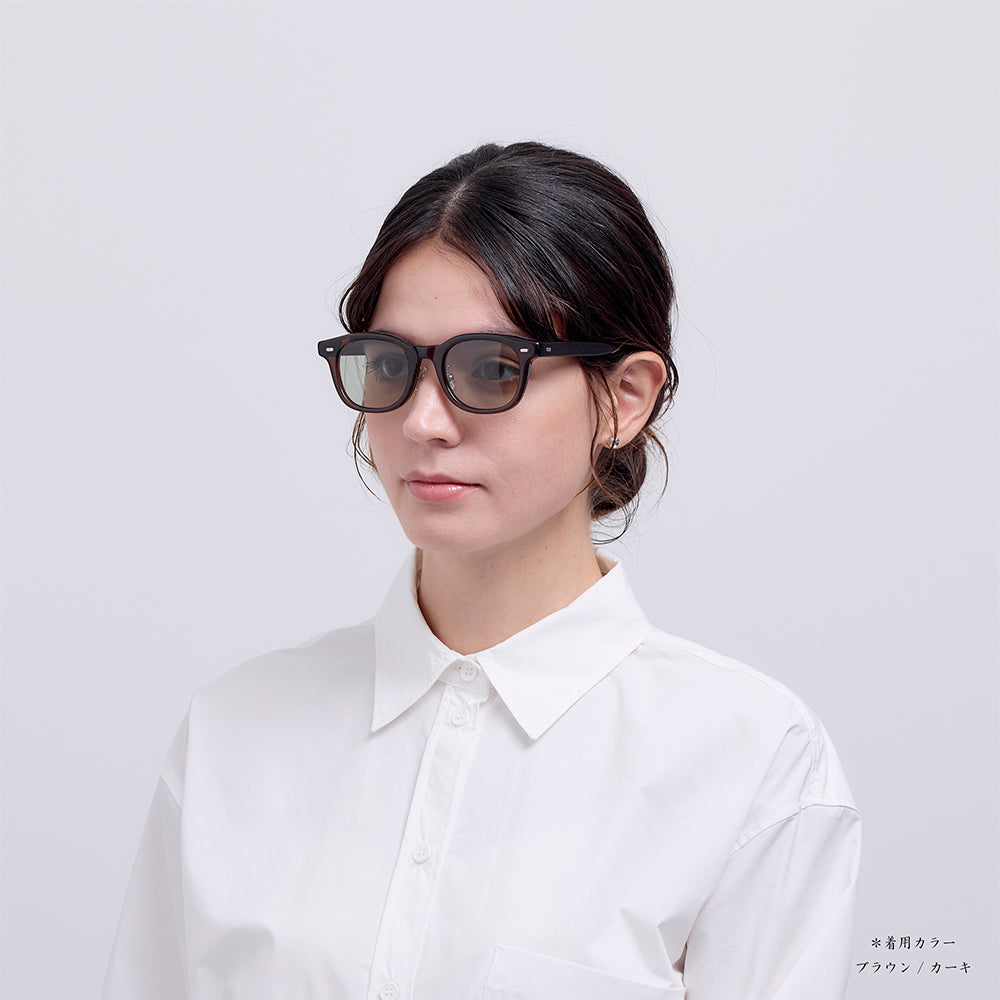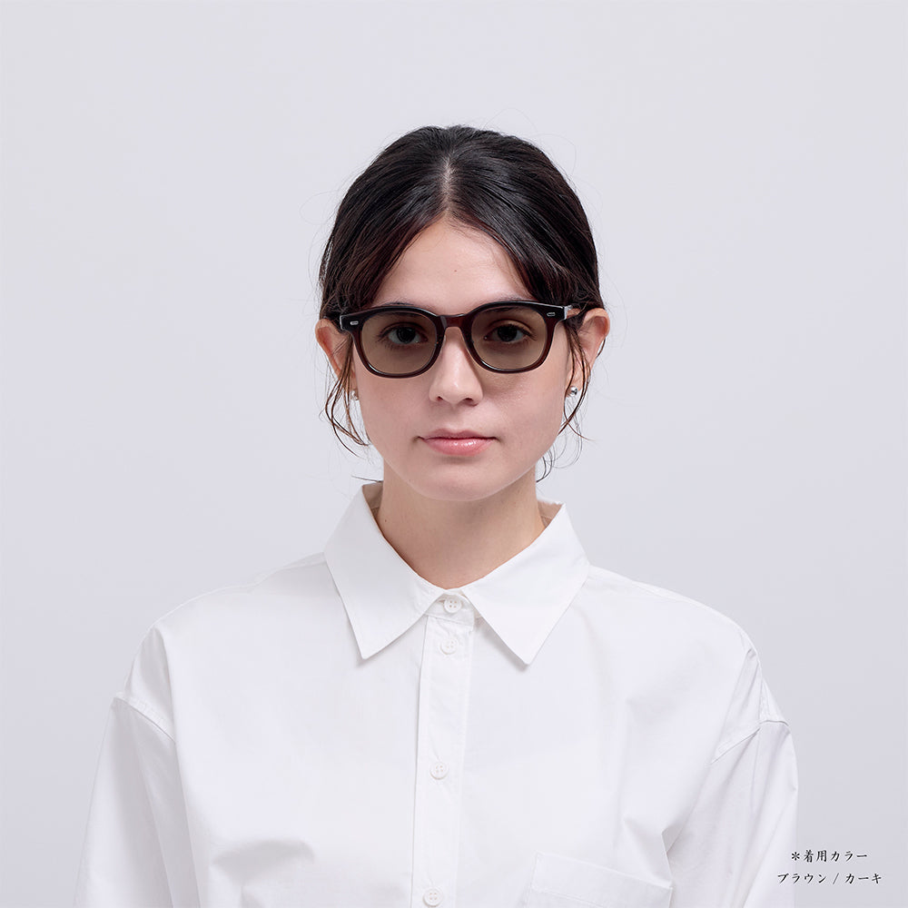 緩やかに仕上げたブローラインと、チューブのような丸みを帯びたアンダーリムが魅力のモデルです。フロントのメタルパーツは深めにセットすることで、視線の先を表面へと動かし、シルエットを引き立たせる効果を持たせています。