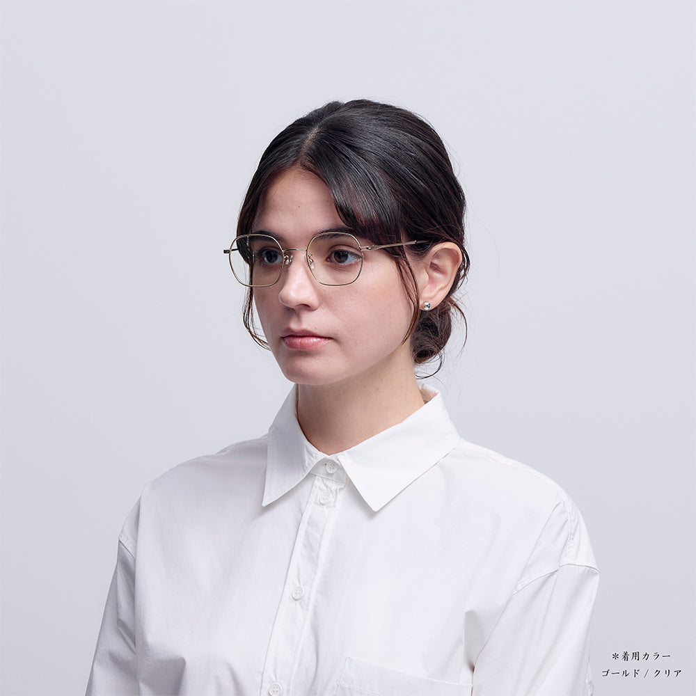 ヘキサゴン型をベースに少し横幅にボリュームを持たせたこちらのモデルは、独特な雰囲気を醸しながらも、カドを立たせず、全体的に丸みを持たせている為、顔馴染みが良く男女問わずおすすめのモデルとなります。とりわけゴールド/シルバーのフレームは、サングラス/メガネというより目元に飾るアクセサリーのような印象を与えてくれます。