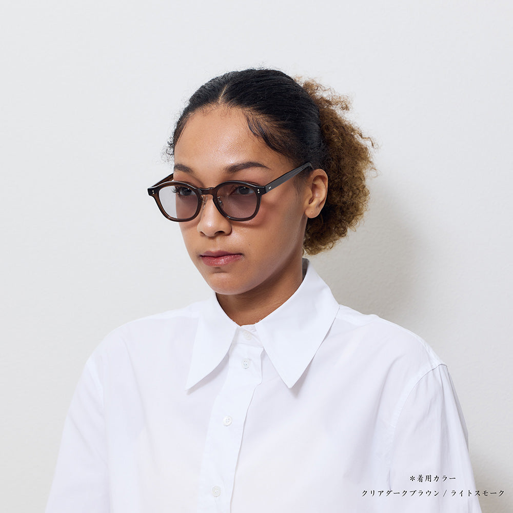 存在感がありながらも主張し過ぎない絶妙なバランスのアイウェアに。