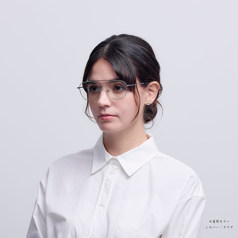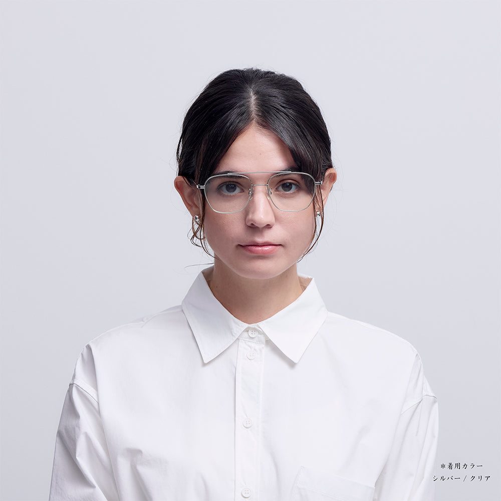 一見シンプルに見えますが、上部バーブリッジ部分には立体的なカーブを加え、下のブリッジの中心部に尖りをつけるなど完成度を追求しています。ダブルブリッジシェイプはクラシカルで男性的なイメージ、もしくは先鋭的なデザインに映ることも多いですが、フレームサイズ、細かなディティールによって、これまでのダブルブリッジとは趣を変えた新鮮なデザインで、現代の都会に溶け込む希薄なモデルです。
