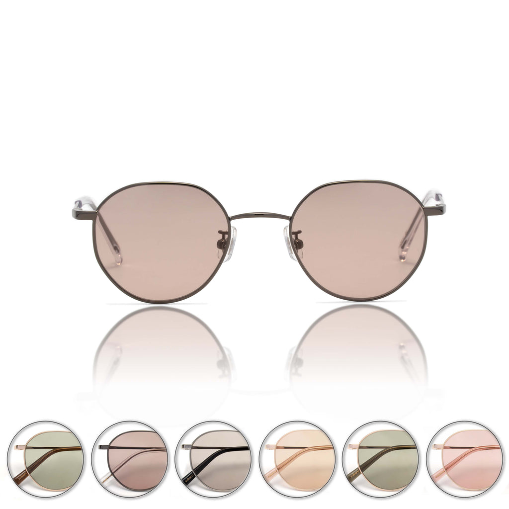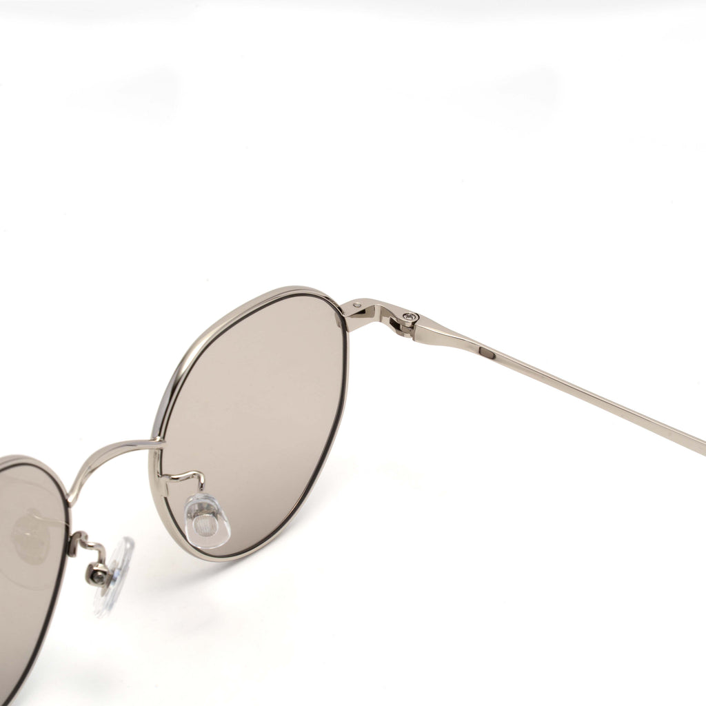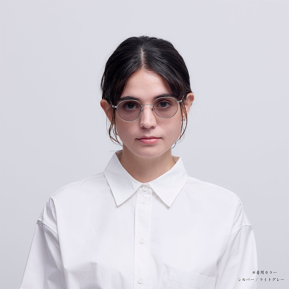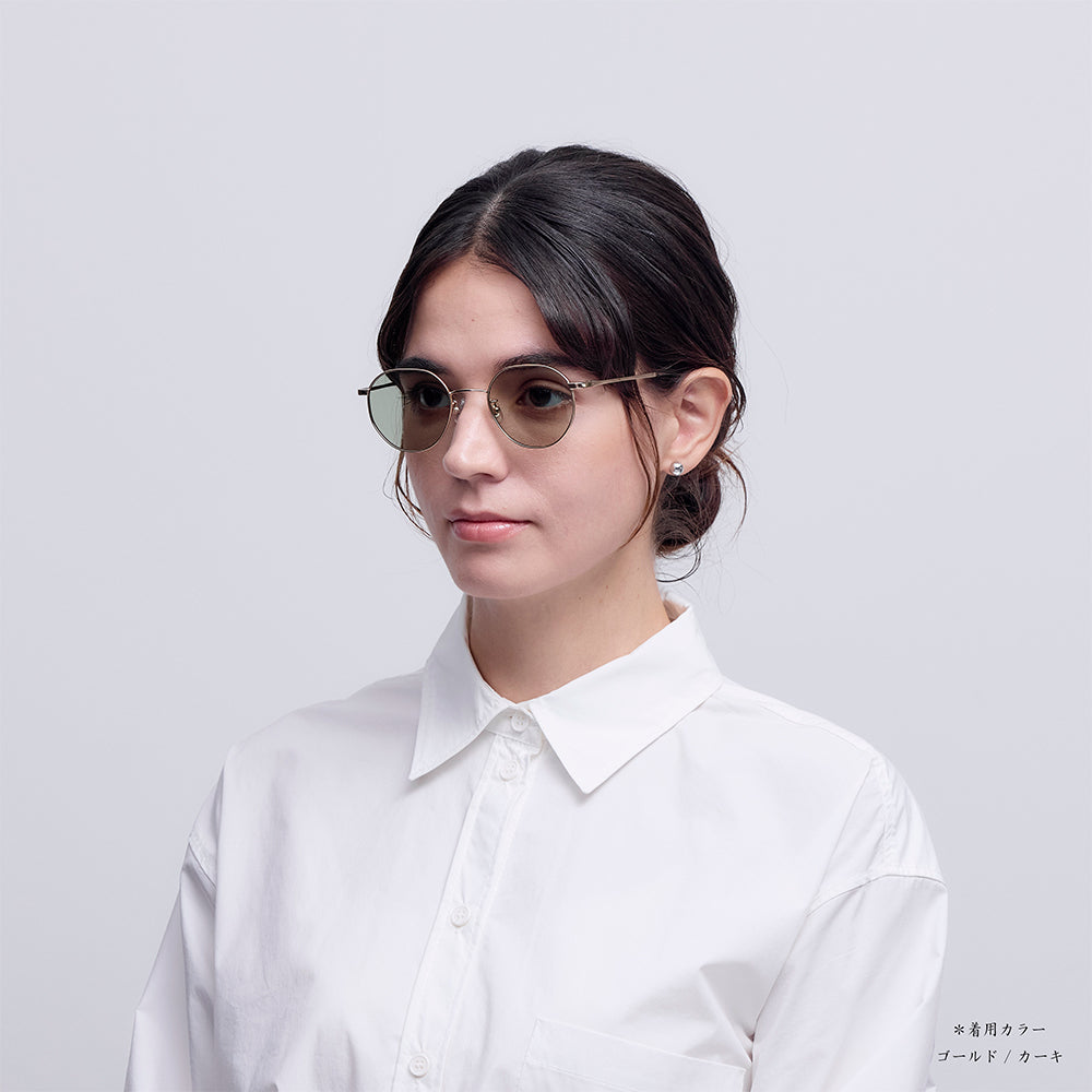 こちらのシェイプはヴィンテージなどに見られるクラウンパント/ボストンシェイプが持つクラシカルな雰囲気を一新したコンパクトで日常にとても良く馴染み、男女問わずおすすめのモデルです。とりわけゴールド/シルバーのフレームは、サングラス/メガネというより目元に飾るアクセサリーのような印象を与えてくれます。