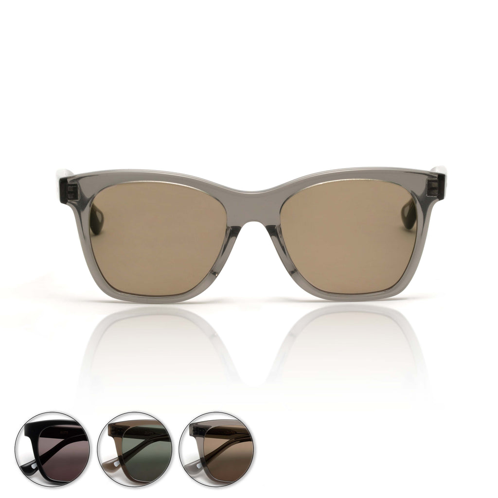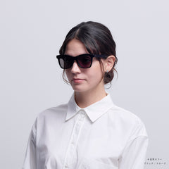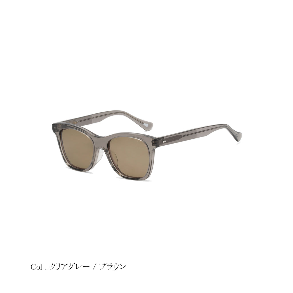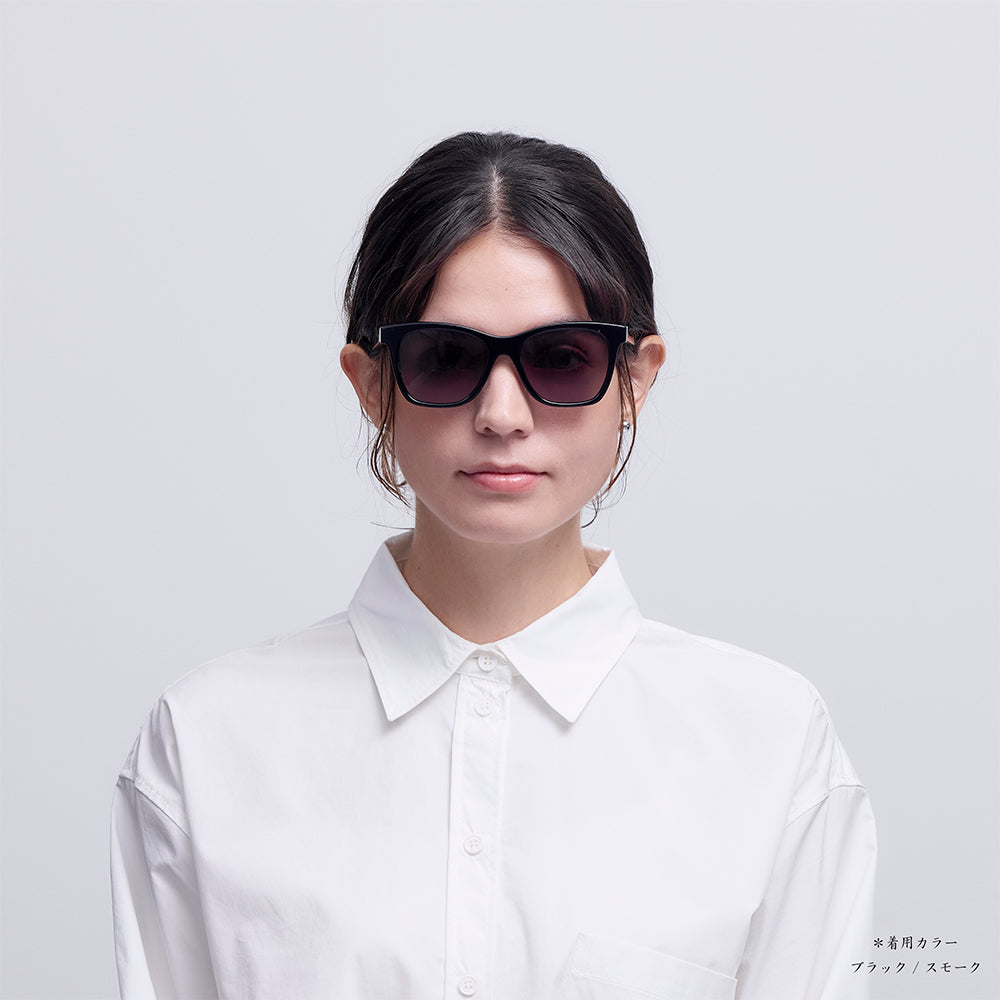 シェイプ自体はバラフライ型特有の強さを表しますが、全体のカッティングが滑らかな為、柔和な要素も残します。また、ビッグサイズでありながらフレームカラーはブラック以外に顔馴染みがよく透けたカラーのクリアグレー、新色のクリアグレーカーキを展開しています。