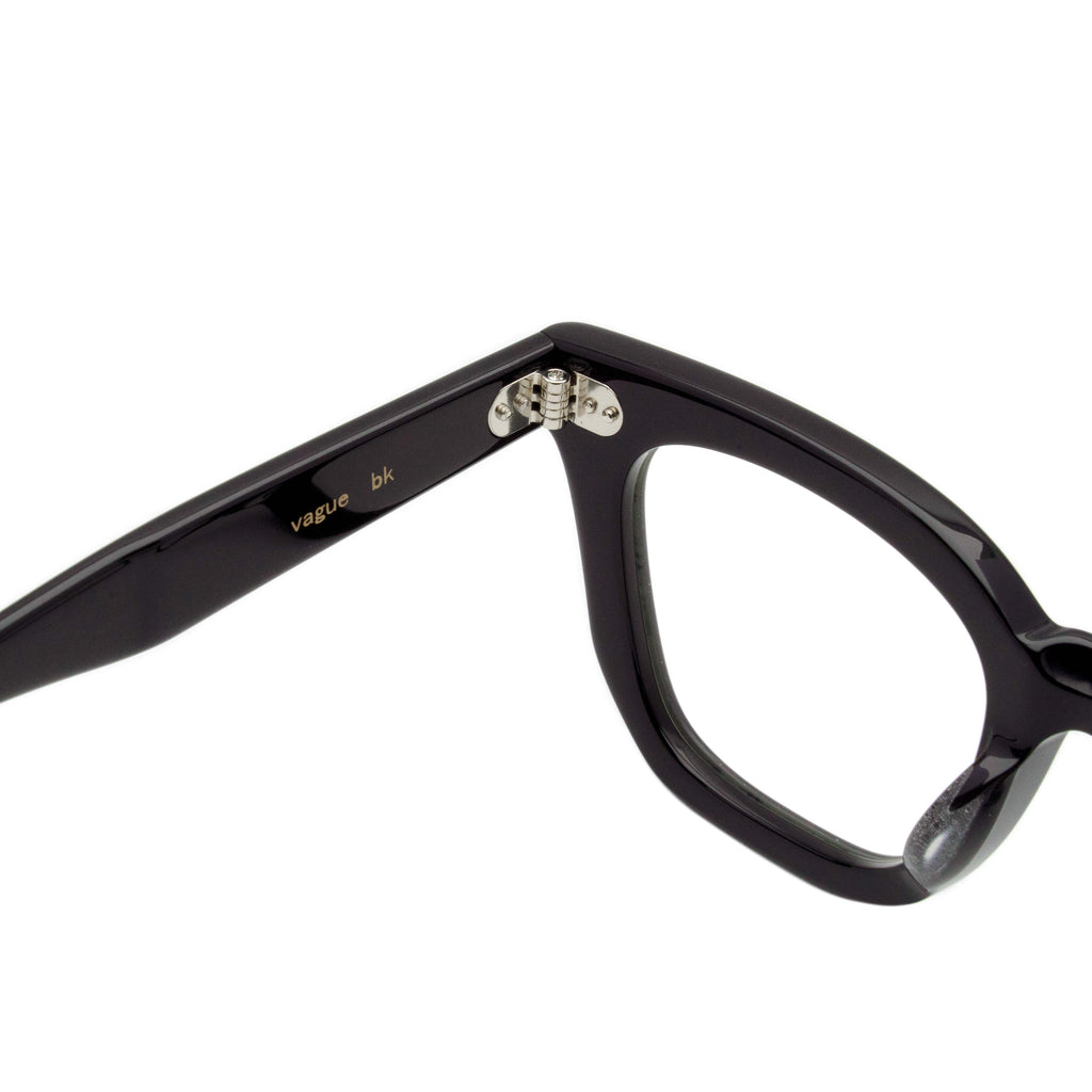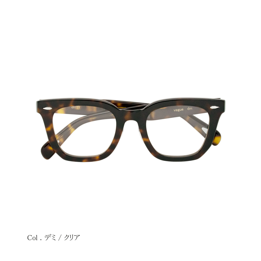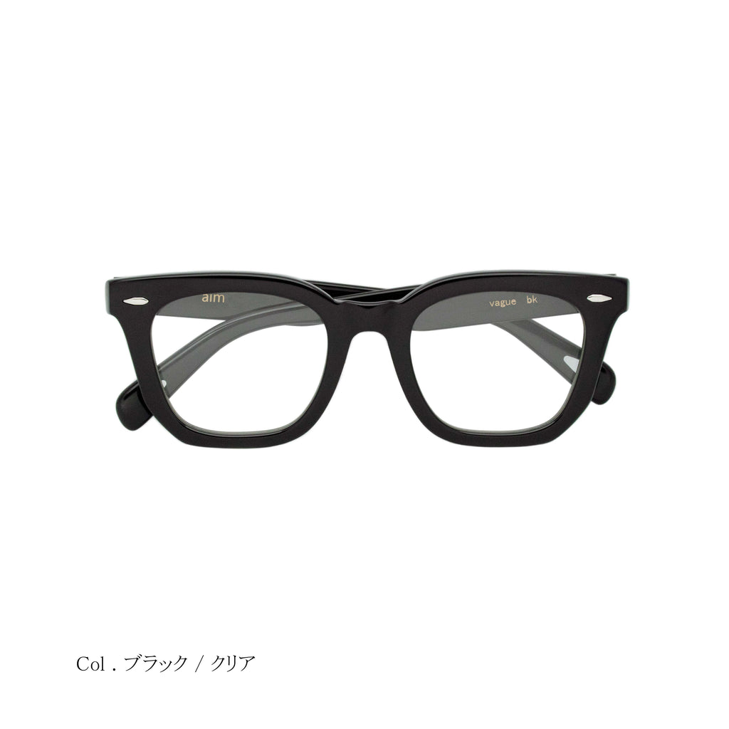 既存のスクエアシェイプはフレームの下側に向かって垂直に落としこむデザインですが、「vague」は上から下のリムにかけてやや斜めにカッティングしてある為、迫力はありつつも、スタイリッシュなスクエアシェイプに。クラウンパントやボストンシェイプの次をいくスクェアシェイプをお楽しみください。
