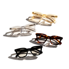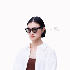 存在感のあるスクエア シェイプモデル。既存のスクエアシェイプはフレームの下側に向かって垂直に落としこむデザインですが、「vague」は上から下のリムにかけてやや斜めにカッティングしてある為、迫力はありつつも、スタイリッシュなスクエアシェイプに。クラウンパントやボストンシェイプの次をいくスクェアシェイプをお楽しみください。